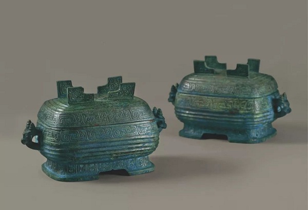 西周晚期‘曾伯克父’盨(对) 长33 厘米 宽19 厘米高19 厘米×2 铭文:“唯曾伯克父甘娄迺用作旅盨子孙永宝” |