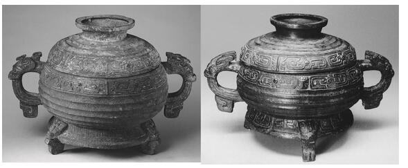相关青铜器参考:左 1976 年陝西省扶风县庄出现的三年兴壶 右 1993 年山西曲沃北赵村晋侯墓地出现的杨姞壶(图片来源于网络)
