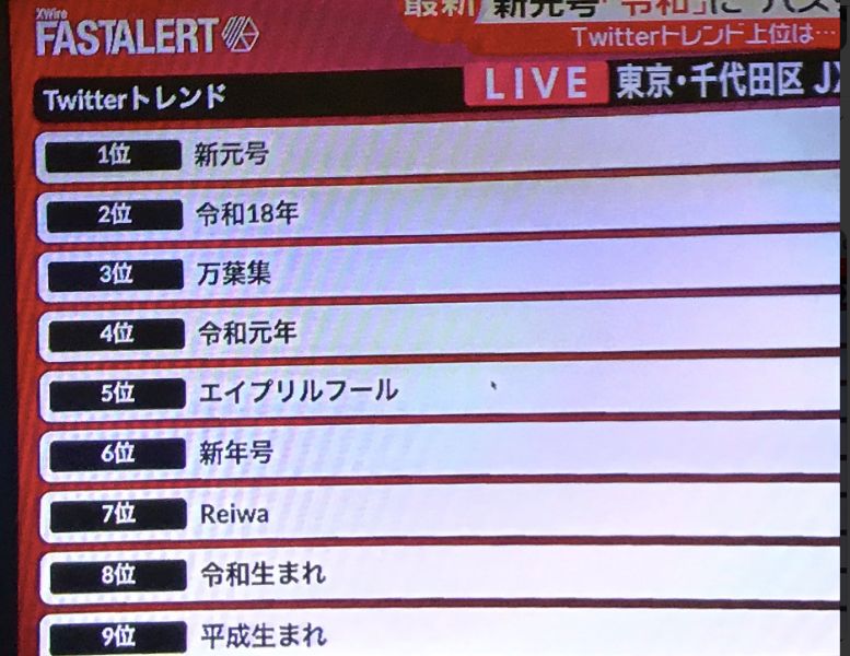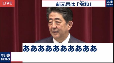 日本电视台‘安倍首相正在解释新年号“令和”的意义’ 朝日电视台‘安倍首相正在解释新年号“令和”的意义’ TBS电视台‘安倍首相正在解释新年号“令和”的意义’ 东京电视台‘瞧瞧这道入口即化的香辣鹿沼和牛丼饭’ 而且,东京电视台的网络直播也出现了问题,标题栏只有一串假名あ。