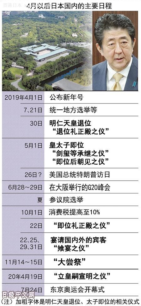 日媒列出的有关日本4月以后的主要政治日程安排 大型活动不断涌现 日本首相安倍晋三年初面对秘书官等人发出号召称,“今年将成为留在历史上的一年。要期待重大工作”。今年在春季以后,除了有关皇位继承的一系列活动之外,还将接连出现往年所没有的大型政治和外交日程。“要期待”这个说法带有紧张感。 在皇太子5月1日即位为新天皇并改元之后不久,美国总统特朗普将访日。安倍4月将访问华盛顿,6月特朗普将为出席在大阪举行的二十国集团(G20)峰会而再次访日。特朗普罕见地在短时间内2次访日的决定性因素是,日本将在新天皇即位之后作为首位国宾而接待他。 根据正在推进的中美磋商的走向,特朗普要求削减贸易逆差的矛头有可能指向日本。还有声音指出了特朗普要求日本承担驻日美军更多驻扎经费的可能性。 报道称,中方领导人可能会出席安倍担任主席的G20峰会。各国都将关注日本能否在中美贸易对立的背景下承担遏制全球贸易保护主义趋势的作用。 在G20峰会时,安倍将与俄罗斯总统普京举行第26次会谈。已就加速和平条约谈判达成协议的两位首脑能否打开在南千岛群岛(日称:北方四岛)主权问题上停滞不前的现状,届时将是关键时刻。 在内政方面,着眼于改元的变化已经出现。3月27日,在未发生巨大混乱的情况下通过了创历史新高的超过101万亿日元的2019年度预算,这是因为执政党和在野党都有着面临改朝换代、最好减轻对立氛围的默契心理。 10月面临着消费税率提高至10%。在2014年从5%提高至8%之后,安倍两次推迟增税。很多日本政府相关人士表示,“如果此次也不能提高,消费税将无法再提高”。着眼于社会保障费持续膨胀的日本将来的财政,提高消费税是不容失败的课题。 对于因偶然的机缘而肩负时代转变重任的安倍来说,重要政治日程不断涌现的令和元年(2019年)的渡过方式将对新时代的内政和外交的前进方向产生影响。 平成元年(1989年)也曾是一个转机。改元时担任首相的竹下登在之后不到半年里因被追究“里库路特事件”的责任而下台。随后的宇野宗佑也在平成最初的参议院选举中败北,结果海部俊树上台。 在迎来泡沫经济顶峰的1989年12月底,日经平均指数达到创历史新高的3万8915点。但是,经过之后的经济停滞和金融系统危机,日本进入“失去的20年”。日本所面临的最大问题人口减少的前兆也出现在平成元年,总和生育率降至低于1966年的1.57。 安倍此次对已决定延续前例的新年号发布程序稍微作出了改动。内阁官房长官菅义伟在记者会上宣布用毛笔写的新年号并作出说明之后,安倍本人也在正午前后举行记者会,发表谈话。安倍亲自阐述年号所包含的意义及向国民发出的信号,可以看出作为首相肩负转变重任的决心。 在国民心里扎根 年号将区分出时代,在生活在那个时代的日本人的心里深深扎根。天皇在发生天灾和不幸之事时希望改变人们的心情而主动改元的情况也很多。 日本明仁天皇将于4月30日退位,平成时代将在第31年落下帷幕。5月1日新天皇即位、年号改为令和之后,日本政治和经济面临的氛围有可能明显改变。 |
