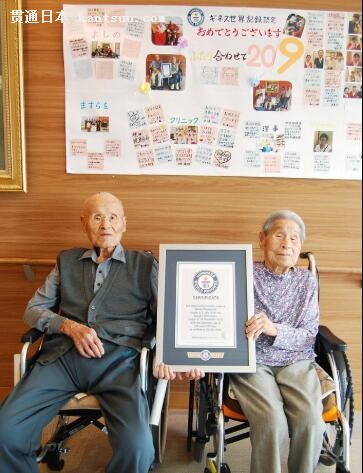 松本政雄夫妇(出处:《朝日新闻》网站) 他一生中经历过多次战争,并3度从军,也曾被俘虏过,多次彷徨在生死的边缘。 “可以活到和平时代,真是感慨万千”。在面对日本媒体采访时,他对即将到来的新时代给予了很大期待。 出生在大正时代的妻子Miya子今年已经101岁。去年7月,老夫妇俩以共计年龄208岁259日,被吉尼斯世界记录认定为世上最长寿的夫妇。 两人都是大分县出身,昭和12年(1937年)结婚。一生共养育了5个女儿。2年半前,夫妇俩搬到了高松市内的住宅型收费养老院居住,每天都高兴地期待着13个孙子和25个曾孙经常来探视的身影。 由于高龄,他们身体衰弱得很明显,腰腿不便,生活中缺少不了轮椅。最近一年以来,松本政雄眼睛耳朵都衰退得厉害,每天喜欢读报和下围棋的爱好也不能维持了。“好不容易活到了好时代”,惆怅中充满了无奈。 尽管如此,夫妇两人食欲并没有降低,也没有大的老毛病。跟随媒体采访的五女儿说道:“要是能活到2020年的东京奥运会就好了”。 当听到这话,松本政雄发出呵呵的笑声。妻子Miya子则笑着说,“过去一直喜欢打网球之类的体育项目,身体结实着呢,一定活到奥运会召开的时候”。(编译:刘戈 校对:陈建军) |