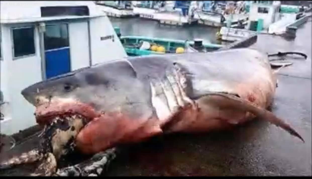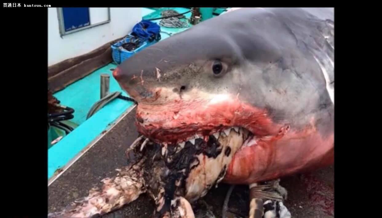 日本外海现2000公斤大白鲨 竟被海龟噎死