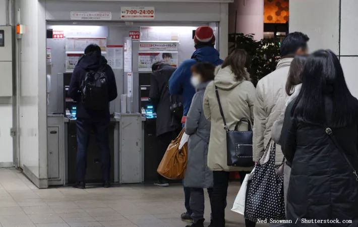 而对于普通民众来说,当然不会放过这个千载难逢的机会。 处处“人从众” 据日本时事通讯社,十连休还没开始,26日多地出现ATM机前排队取款的情况,致使短时间内取款金额大增,东京多部机器出现无钱可取的情况。
