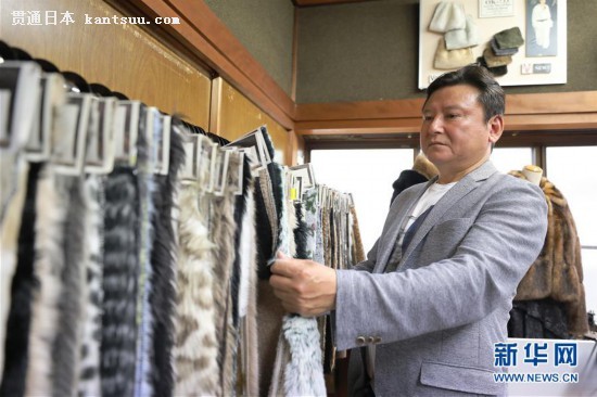 这是5月17日在日本和歌山县,冈田织物现任社长冈田次弘挑选人造毛皮产品。 新华社记者 杜潇逸 摄 |