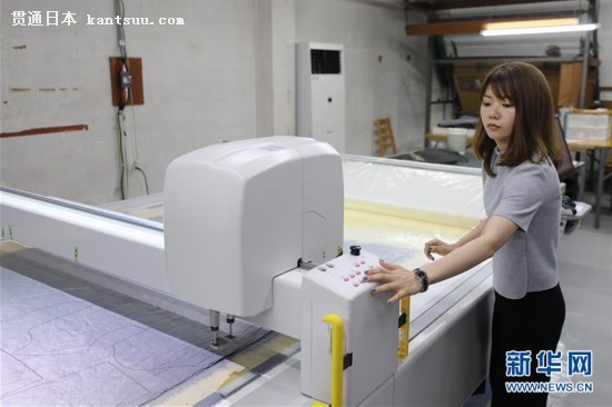 这是5月17日在日本和歌山县,冈田织物公司的工作人员使用合作研发的专用机器剪裁人造毛皮。 新华社记者 杜潇逸 摄