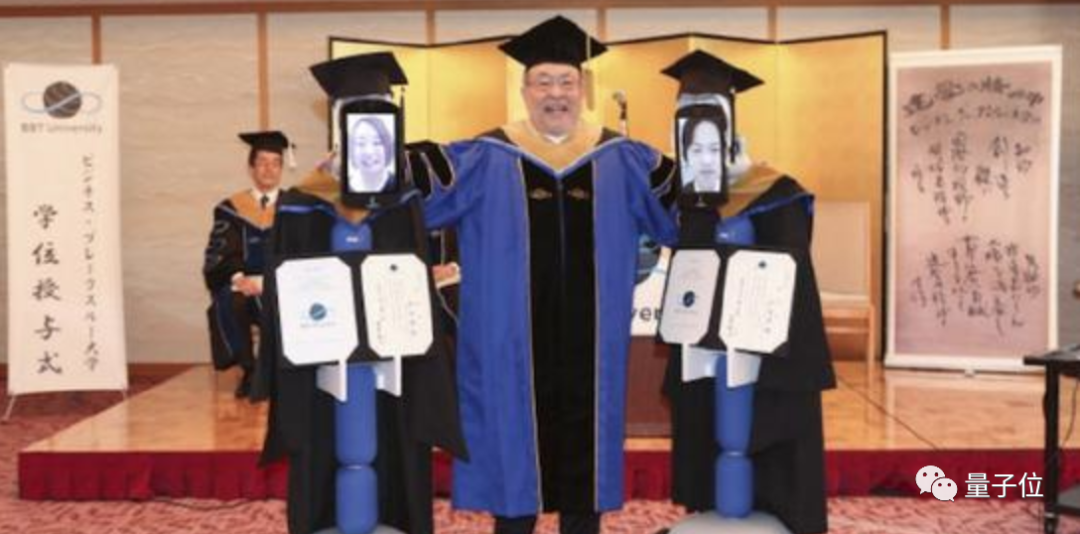 而且,这些“建筑师”们也非常认真,走廊、安全通道、人行道,各种细节都抓得非常仔细。 疫情之下,学生们不能在学校举行毕业典礼,确实是非常遗憾的事情。但也正如奥伯林学院的学生所说: 无论以什么样的形式毕业,我会很自豪的和2020届毕业生站在一起。 除了《我的世界》,还有你的机器人 关于「云毕业」,除了学生在《我的世界》里聚集,还有校长带着机器人操办一切的。 日本BBT大学日前在东京举行了毕业典礼,启用了一款新研发的机器人“newme”,代替学生本人出席仪式。