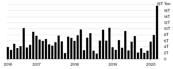 金融市场的各个角落几乎都可以感受到日本央行的存在,其行动继续影响着全球的资金流动。2020年第一季度,日本央行的资产负债表中增加了惊人的30万亿日元(约合2780亿美元),包括债券、股票和其他资产。 同样迅速“长胖的”还有美联储、欧洲央行,巨量资产负债表让市场目瞪口呆,共同担心一个问题:买入的资产到期后谁来还。 日本股票指数在3月份进入自由落体状态时,日本央行将股票购买量提高至创纪录水平,从而遏制了暴跌。在货币市场撒出数千亿美元的流动性,像水一样流向商业银行。如何紧密跟踪央行这些不断扩大的市场运作及其影响,对投资者而言变得越来越重要。