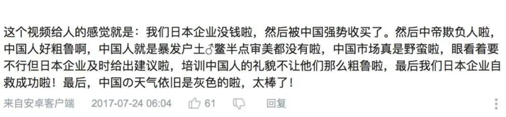 这是我看这个纪录片觉得最可惜的事情。 NHK在叙事上把过错都归咎到如意头上,让日本人的思考仅仅停留在“千万别卖身给中国企业”,忽略了反思自身的问题。 这样的民族主义情绪也让中国观众群情激奋,护短如意,指责日本人虚伪不知感恩,难以冷静下来理性思考中国企业普遍存在的问题。