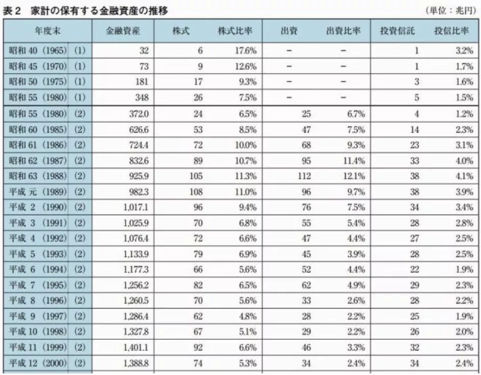 1987年出现了另外一件事,美国股市的黑色星期一。如果看过索罗斯回忆录,大家一定记得这一场几乎绞杀这位大鳄的灾难。索罗斯看到了美国股市的泡沫,但他认为当时日本股市的泡沫更加严重。于是一手做多美股,一手做空日股。然而美股提前出现了暴跌,导致了一轮全球股市的快速下跌。索罗斯最终成为了“卖在底部的那个大家伙”。相反,日本股市在调整之后的10月21日,居然反弹了2037点,反弹幅度9.3%,创历史最高单日涨幅。日本股市能够强力反弹,和日本有着大量的散户有关。 1986年日本的散户数量是960万人,到了1990年达到了1540万人。在长期利率水平下降的时候,越来越多的日本个人选择把钱投入股市。日本家庭资产中对于股票的配置比例,从1980年的6.5%上升到了1987年的10.7%。不要忘记,这个过程中家庭资产总额也从372兆日元上涨到了832兆日元。下图我们看到家庭资产中对于股票的配置比例在1989年达到11%之后开始了不断的下滑。
