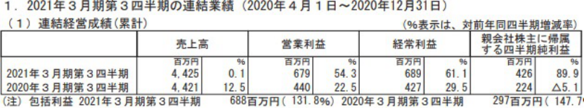 2020年4至12月 日本松下电器营收及利润均同比下滑