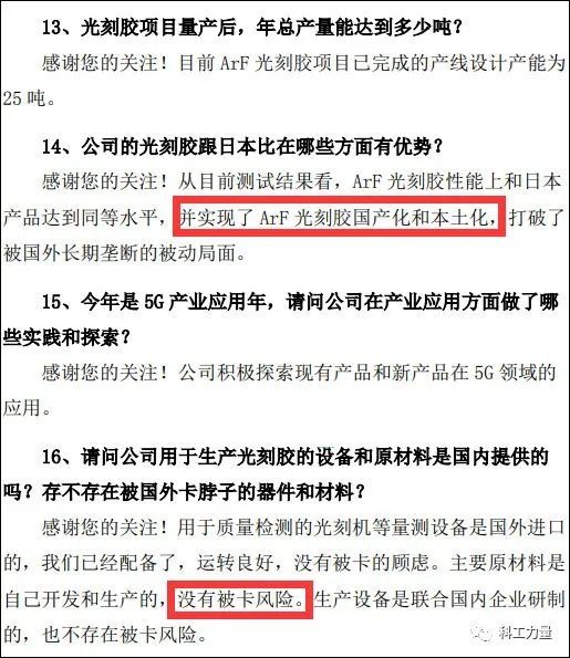 光刻胶是半导体光刻工艺的核心材料,可以决定半导体图形工艺的精密程度和良率。作为半导体制造重要材料,由于技术壁垒和客户壁垒较高,全球半导体光刻胶市场集中度一直很高,市场长期被日美厂商垄断。 在全球各类芯片纷纷缺货之际,行业媒体报道称,由于日本信越化学KrF光刻胶产能不足等原因,导致中国大陆多家晶圆厂KrF光刻胶供应紧张,部分中小晶圆厂KrF光刻胶甚至出现断供,多家晶圆厂正在加速验证导入国内KrF光刻胶。 受此消息影响,27日A股光刻胶板块涨幅在所有板块中排名第一,南大光电收涨9.7%、晶瑞股份收涨20%、上海新阳收涨11.2%。同时,中芯概念、半导体、碳化硅、第三代半导体等板块也大幅上涨。 5月27日,A股不同板块走势 业内人士称,近期国内外有不少晶圆厂在增加产能,光刻胶生产企业难以快速增产,而且光刻胶产品本身具有保质期,这些都是光刻胶供应紧张的因素。在晶圆厂中,越是先进的工艺,使用的光刻胶越多,虽然光刻胶市场规模不大,但是单价较高,利润率也较高,这成为光刻胶生产企业持续研发的动力。 梳理发现,在国家02专项等政策扶持下,国内光刻胶近年来已取得不少进展。 其中,南大光电宣布ArF光刻胶25吨产线建设已完成,明年将量产,性能与日本产品同等,已经拿到首个订单;北京科华KrF光刻胶已通过包括中芯国际在内的部分客户认证,并实现批量供货;晶瑞股份g-line/i-line光刻胶量产,KrF光刻胶已进入客户测试阶段,即将研发ArF光刻胶;上海新阳的ArF干法、KrF厚膜等中试光刻胶产品已取得优异的客户端测试结果。 市场规模不大,但必不可少 今年2月,日本福岛近海发生7.3级地震,导致光刻胶大厂信越化学部分工厂停产。5月26日,集微网援引行业人士报道称,信越化学KrF光刻胶产线受到很大程度破坏,至今尚未完全恢复生产。 在产线受到影响和晶圆厂扩产等多方因素下,信越化学不得不停止向中国大陆几家晶圆厂供应KrF光刻胶。虽然东京应化填补了信越化学海外大部分缺失的KrF光刻胶产能,但目前仍存在不小的缺口。 除信越化学KrF光刻胶产线供应出问题外,更重要的原因是,在福岛地震前,KrF光刻胶的产能供应就较为紧张。据央视财经报道,今年年初以来半导体光刻胶供应极为短缺,以往企业每次采购的光刻胶量约在100kg,近期由于原材料短缺,每次只能买到很小的量。一瓶4公斤的光刻胶成本约4-5万元,价格也由于供应紧张开始上涨。 信越化学官网截图 光刻胶又称光致抗蚀剂,它是指由感光树脂、增感剂和溶剂三种主要成分构成的对光敏感的混合液体。在紫外光、电子束、离子束、X射线等辐射的作用下,其感光树脂的溶解度及亲和性由于光固化反应而发生变化,经适当溶剂处理,溶去可溶部分可获得所需图像。 光刻胶主要成本构成如下图: 华泰证券2020年11月研报 按应用领域分类,光刻胶可分为印制电路板(PCB)光刻胶、显示面板光刻胶、半导体光刻胶及其他光刻胶。目前,国内光刻胶以PCB用光刻胶为主,显示面板、半导体用光刻胶供应量占比极低。 浙商证券2020年4月研报截图 依照曝光波长分类,光刻胶又可分为紫外光刻胶(300-450nm)、深紫外光刻胶(160-280nm)、极紫外光刻胶(EUV,13.5nm)、电子束光刻胶、离子束光刻胶、X射线光刻胶等。在不同曝光波长的情况下,光刻胶适用的光刻极限分辨率也不尽相同,在加工方法一致时,波长越小加工分辨率更佳。 因此,不同波长光源的光刻机需要搭配相应波长的光刻胶进去光刻。目前半导体光刻胶最常使用曝光波长分类,主要有g线、i线、KrF、ArF和最先进的EUV光刻胶,其中DUV光刻机分为干法和浸润式,所以ArF光刻胶也对应分为干法和浸润式两类。越先进制程相应需要使用越短曝光波长光刻胶,以达到特征尺寸微小化。 华泰证券2020年11月研报 前文提到的KrF光刻胶对应曝光波长为248nm,适用的逻辑制程工艺为0.25um-0.11um,晶圆尺寸为8英寸。而中芯国际目前可量产14nm工艺,该工艺需要采用更高端的ArF光刻胶。 国内半导体咨询机构“芯谋研究”企业定制项目一部研究总监王笑龙分析指出,KrF光刻胶主要是面向成熟工艺,而国内晶圆厂也是以成熟工艺为主,所以对KrF光刻胶的需求量还是比较大的。 全球光刻胶应用结构 据电子材料市场研究与咨询服务公司TECHCET预测,2021年半导体制造所需的光刻胶市场规模将同比增长11%,达到19亿美元。从抗蚀剂类型来看,2020年和2021年的光刻胶市场,用于KrF和浸入式ArF的光刻胶市场较高。对于极紫外光刻(EUV),应用范围正在从逻辑芯片扩展到DRAM。2021年的EUV光刻胶市场将超过2000万美元,并且此后还将继续增长,预计到2025年将超过2亿美元。 而根据智研咨询预测,2022年中国大陆半导体光刻胶市场空间将会接近55亿元,是2019年的两倍。不过,相对半导体设备市场来说,光刻胶的规模要小的多。国际半导体产业协会(SEMI)公布的数据显示,中国大陆2020年半导体设备销售总额达到187.2亿美元(约合人民币1224.2亿元)。 2019年-2020年中国纯晶圆代工市场规模 虽然市场规模不大,但是光刻胶在芯片制造中必不可少。作为光刻曝光的核心材料,光刻胶分辨率是光刻胶实现器件的关键尺寸(如器件线宽)的衡量值,光刻胶分辨率越高形成的图形关键尺寸越小。 目前,相同用途的光刻胶需要大量投资,行业退出壁垒较大、技术壁垒较高。与此同时,光刻胶厂家为了实现技术保密性,从而会与上游的原料供应商