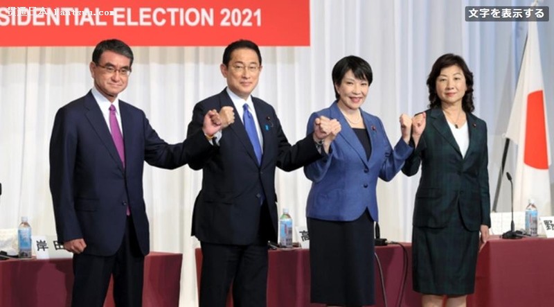 参加本届自民党总裁选举的日本行政改革担当大臣河野太郎(左一)、自民党前政务调查会长岸田文雄(左二)、日本前总务大臣高市早苗(右二)以及自民党代理干事长野田圣子(右一)。(图片来源:《朝日新闻》网站) 经过记者对381名国会议员以及身边人士进行确认得知,截至9月26日,未表明态度的国会议员超过60人,所以当前的局势仍存在变数。自民党内部认为,包括各地的票数在内,第一次投票不会出现得票超过半数的候选人,因此前两名候选人直接通过最终投票产生新总裁的概率很大。 从各派系来看,岸田文雄获得了自己所率领的岸田派(46人)的坚定支持,还从自民党最大派系的细田派(96人)和河野太郎所属的麻生派(53人)得到一定程度的支持。而河野太郎除了获得麻生派5成的支持,也获得了二階派(47人)约5成的支持。高市早苗除了获得细田派中超过5成人的支持,还获得了二階派约2成人的支持。 据了解,日本众议院选举即将开始,本次自民党总裁选举“看脸”成分很强。从分别支持岸田文雄和河野太郎的参众议员表态可以发现,支持岸田文雄的参众议员都占了大约3成,而支持河野太郎的众议员超过3成,但参议员的支持率仅有1成。