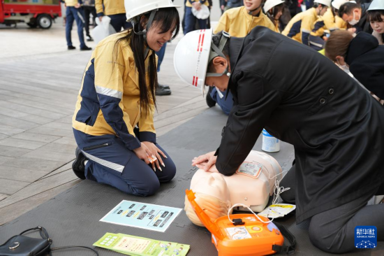 新华社东京3月12日电 (记者钱铮 杨智翔)东京市中心六本木新城的广场上,人们在工作人员指导下学习胸外按压和除颤仪使用方法。广场一侧的帐篷内“浓烟”弥漫,人们听从指挥,以湿巾捂住口鼻穿越帐篷。另一侧,人们登上地震模拟车,体验在地震的剧烈晃动中如何自救,还向消防员学习消防水枪的使用方法。 3月11日是东日本大地震14周年的日子,日本多地组织了各种形式的防灾演练。在六本木新城广场,约1000人参与了当天的防灾演练。