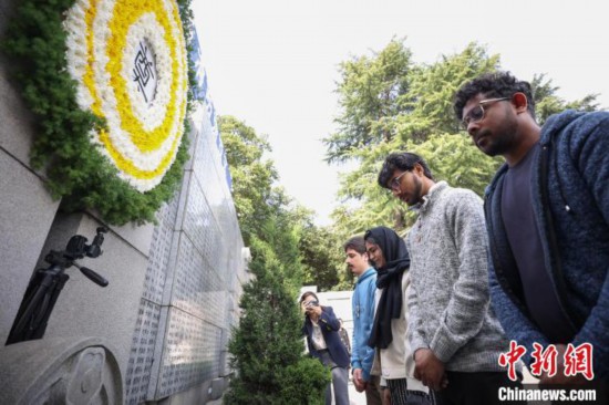 4月4日,外国友人参与南京大屠杀死难者清明祭仪式。中新社记者 泱波 摄 2025年是南京大屠杀惨案发生88周年。目前,健在的南京大屠杀幸存者平均年龄超过90岁,幸存者后人们肩负起传承家族记忆、传播历史真相的重任。 南京大屠杀幸存者葛道荣于2023年离世,其儿子葛凤瑾参加了当天的清明祭仪式。葛凤瑾看着“哭墙”上亲人的名字说:“三爷爷、舅爷爷……我来看你们了。我爸爸生前对传播这段历史认真又执着,下面就由我来接力。” 东南大学海外教育学院的外国留学生们与南京大屠杀幸存者后人面对面交流。来自埃及的法易表示,在多次参观侵华日军南京大屠杀遇难同胞纪念馆后,他成了馆里的紫金草国际志愿者,他希望年轻人都能成为传播和平种子的使者。