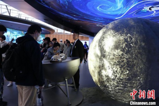 4月13日,2025年大阪·关西世博会(大阪世博会)正式开园,以“共同构建人与自然生命共同体——绿色发展的未来社会”为主题的中国馆当天举行了开馆仪式。图为参观者在中国馆内参观嫦娥五号、嫦娥六号探测器采集的月球土壤样品。中新网记者 朱晨曦 摄 中国馆以“天人合一”“绿水青山”“生生不息”为叙事脉络,让传统文化与现代科技交织,展现了中国传统生态智慧和中国绿色发展理念,成为大阪世博会靓丽的“中国名片”。(完) |