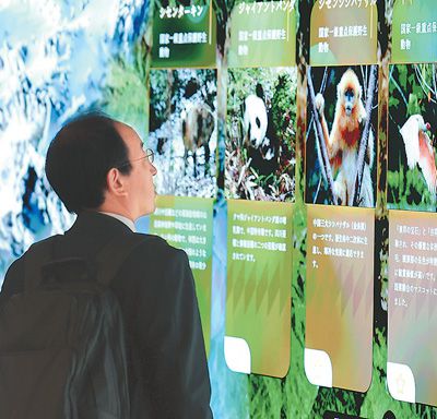 在日本大阪世博会,参观者在中国馆内参观游览。新华社记者 贾浩成摄 4月13日,在日本大阪市人工岛梦洲,主题为“构想焕发生机的未来社会”的日本大阪·关西世博会(以下简称“大阪世博会”)开园。当日,大阪世博会中国馆以“共同构建人与自然生命共同体——绿色发展的未来社会”为主题举行了开馆仪式。 中国馆坐落于大阪世博园区的中心地带,占地面积约3500平方米,是大阪世博会最大的外国自建馆之一。其建筑外形宛如绵延展开的中华书简,其上以金、篆、隶、行、楷5种字体镌刻着119句汉字诗词名篇,涵盖《诗经》《楚辞》等经典著作。令人一眼就能感受到强烈的中国元素和浓郁的文化气息。 开馆仪式上,中国馆携月壤样本、“蛟龙”号体验舱等展品亮相,并通过大量互动装置、数字化科技、AI(人工智能)技术等,让展品“活起来”、展项“动起来”。以“天人合一”“绿水青山”“生生不息”为叙事脉络,中国馆让传统文化与现代科技交织,展现了中国传统文化智慧和绿色发展理念,成为大阪世博会亮丽的“中国名片”。 “天人合一”展区—— 数字技术让文物“活灵活现” 步入馆区,首先映入眼帘的是馆前以篆书石鼓文字体撰写的醒目“中国”标识,古朴庄重,尽显中华文字的独特魅力。进入馆内,正门玄关上是一面环形大屏幕,其上播放着中国非遗博主李子柒、游戏《黑神话:悟空》制作人冯骥、电影《哪吒》系列导演饺子等新锐青年代表的介绍视频。 走进主会场,首先看到的是“天人合一”展区。在展厅正中央,一座三层楼高的动态艺术光幕圆盘气势恢宏地伫立在观众面前。在光幕上,以“二十四节气”为主题的大型多媒体动态影像循环播放。影像中,94岁高龄的工艺美术家常沙娜用饱含深情的笔触,将她毕生对敦煌壁画、图案纹样的研究成果与中国传统二十四节气完美融合。 “二十四节气”大型多媒体圆盘装置主创人员、中央美术学院动画中心主任舒霄说,这件动态艺术圆盘装置是敦煌美学与数字科技的跨时空对话。该装置以敦煌壁画手稿为美学根基,融合虚拟现实技术,采用传统壁画与工笔花鸟画绘制工艺,结合手绘与三维动画,生动展现中国人对宇宙的独特认知。设计方案以二十四节气为基础,融入了“春耕、夏耘、秋收、冬藏”四季更迭,体现人与自然和谐共生,让观众感受中国文化的魅力。 圆盘对面是一幅虚拟技术与实景结合的田园画卷,其上将“农业百科全书”《耕织图》进行了数字化呈现,向参观者传递着道法自然、天人合一的“中国智慧”。 圆盘右侧是从天而降的“诗词瀑布”光影矩阵,投影光线贯穿大厅,照射在内厅的三星堆青铜神树文物复制品展柜上,让文物在古朴厚重的汉字光效映衬下如梦如幻。“那些字像是从天花板流淌到地面一样,非常有创意。”参观者有山朋树说。 值得一提的是,一层展出的文物复制品,都搭配了透明交互屏,观众可以通过触摸屏幕,360度旋转、放大文物的影像,近距离接触和观察文物,深入了解这些文物背后的故事。 中国建筑科学研究院有限公司建筑设计院院长、大阪世博会中国馆全过程咨询总负责人孙建超说:“考虑到观众对展览的喜爱主要源于互动性和沉浸式体验感,我们在所有展品的保护罩上采用透明交互屏,这种方式既保留了实物展示,又融入了数字化技术,是传统展示与数字交互的一次很好体现。” “隔着透明交互屏与文物交互让我感受到了历史的真实触感。”日本游客浅仓诗织对本报记者说,“这一幕我以前只在科幻电影中看到过,如今竟然也能亲身体验了。” 在“天人合一”展区内的一面弧形墙壁上,数字投影展示着中国经典曲目《高山》《流水》的“古琴减字谱”,中央美术学院副教授刘钊说:“我们第一次把数字化的古琴谱搬上如此高规格的国际舞台,是希望大家能从中国传统的造字法中发现中国的思维方式。目前全世界学古琴的人都还在用这种文字谱,这是西方音乐曲谱无法代替的。” “绿水青山”展区—— 生态成就具象美丽中国 厦门筼筜湖“从鱼虾绝迹到白鹭归来”的宜人生态,湖南十八洞村和黔东南文旅与生态融合发展的盎然生机,塔克拉玛干沙漠锁边合龙的生态修复,塞罕坝荒漠变绿洲的人间奇迹……在“绿水青山”展区,一个个生动案例展现了生态保护与社会发展协调共进的美丽中国。 大阪世博会中国馆政府总代表李庆霜表示:“从设计选材到施工运营,再到回收利用,中国馆始终把绿色可持续作为核心理念,向‘构想焕发生机的未来社会’交出‘中国答卷’。” 在建筑选材中,中国馆建筑充分尝试了竹材在建筑中的使用。竹子是中华文明的代表性元素,也是可再生的低碳环保建筑材料。 中国贸促会展览管理部(国展局和世博会事务办公室)部长邬胜荣在介绍中国馆建筑的主要设计理念和亮点时表示,中国馆建筑主体以竹材与钢结构结合,墙体选用国内新型低碳固碳竹质产品,主体钢结构、竹简板内外墙、屋面阳光板等装配式、轻量化材料有效减少能源消耗、降低碳排放。同时,积极推行废弃物减量和资源回收利用。“这些举措不仅呼应了人与自然和谐共生的主题,还阐释了绿色生态环保的中国理念。”邬胜荣说。 担任中国馆建筑概念设计方案总设计师的中国工程院院士、中国建设科技有限公司首席科学家崔愷说:“我们提倡开放性,为使用者提供具