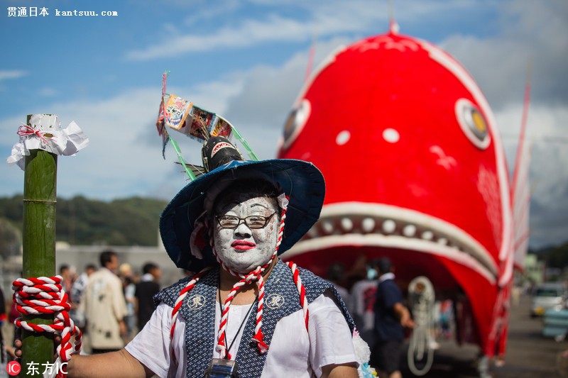 日本爱知县举办传统海鲷祭 壮年扛巨型“鲷鱼”入海求丰收