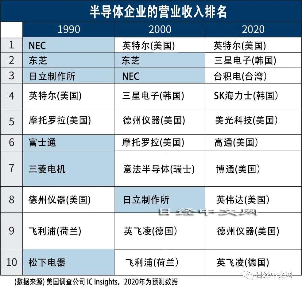 日本的政府、官僚以及民间对本国半导体复兴战略的讨论开始趋于活跃(瑞萨旗下的半导体工厂) “这样下去,再过10年左右,半导体产业恐怕会从日本消失”,日本电子信息技术产业协会的半导体部门会议向日本经济产业省提出的建议透露出强烈的危机感。回顾半导体企业的营收排行榜,1990年日本企业曾在前10名中占据6席,但到2020年,前10名中已找不到日本企业的名字。 1980年代,日本企业借助美元升值的东风,以半导体存储芯片“DRAM”为代表,掌握较高市场份额。不过,由于美国企业的不满,1986年签署了提及市场份额和价格监督的《日美半导体协议》。之后,美国企业趁着个人电脑、传统手机和智能手机的相继普及而恢复增长势头,韩国和台湾企业的价格竞争力和技术水平也不断提升,相反,日本企业则受到挤压。 日本企业在投资竞争、经营判断上落后日本被韩国和台湾拉开差距的第一大原因是对投资竞争的应对。半导体产品价格低廉,行情也随着供求平衡而明显波动。另一方面,以电路微细化为代表的技术竞争激烈,半导体设备动辄数千万日元~数十亿日元,价格高昂。因此,需要观察行情和技术趋势,具备对开发和制造的巨额投资敏锐地做出判断的经营和财务实力。 日本的半导体产业曾作为NEC、东芝和日立制作所等综合机电企业的一个部门实现增长。但在1990年代末的萧条期,这种波动幅度巨大的业务对综合性企业来说成为负担。由于大幅亏损,NEC首脑当时甚至无奈的说“半导体部门有时被称为公司的贼”。在逐渐难以承受尖端技术开发的巨额投资的背景下,日本企业对半导体部门的投资被缩减,经营决策变得迟缓。 形成对照的是,即使在萧条期也通过果断而大胆的投资实现快速增长的韩国三星电子。三星借助行情因日企减少投资而变得最糟糕的时期敲定投资。然后在行情复苏的时期率先收获果实,在繁荣期赚钱。通过这一战略,三星夺取了优势。 三星的已故前会长李健熙借助果断而大胆的投资推动半导体业务快速增长 在已故的前会长李健熙的卓越领导能力之下,三星在针对需要大规模资金的半导体工厂的投资方面,积极利用增发和附新股认购权公司债(可转换公司债券,CB),灵活地展开投资。另一方面,日本企业针对半导体投资,则避免权益融资(equity finance,伴随新股发行的融资),而是依赖债务融资(Debt Finance,通过借贷实施的融资),错失了投资良机。 破灭的“日之丸代工”构想从受到行情波动困扰的半导体厂商获得订单的是涉足代工业务的台湾企业台积电(TSMC)。台积电创始人的张忠谋1999年接受采访时就曾表示,日本也不得不改变自主建立的业务模式的时刻必将到来。 台积电构建的是将半导体的“设计”和“制造”分开的商业模式。台积电预测成为客户的半导体的无厂设计企业将崛起,确立了世界最初的半导体代工模式。 未能赶上这种业务模式的变革是日本企业遇到的第2个挫折。 由于盈利环境的恶化,自1990年代末至2000年代前半起,日本企业相继实施半导体业务的剥离与合并。1999年,随着NEC和日立制作所的DRAM业务的合并,诞生了后来的尔必达存储器。其他企业也不断撤退与合并,日本从事DRAM业务的企业集中至尔必达1家。2003年,日立制作所和三菱电机的逻辑半导体业务合并,诞生了瑞萨科技(现为瑞萨电子、Renesas Electronics),整合不断被推进。 日本一家半导体厂商的高管回忆称,2000年代的重组期曾经应该是“日本进入代工业务领域的大好机会”。实际上,在早已加强危机感的日本经济产业省的推动下,构想被多次提出。2006年,日立制作所、东芝和瑞萨共同出资的策划企业“尖端工艺半导体代工筹备公司”设立。该公司摸索了用于家电等的系统LSI的代工,但由于无法与需求方形成步调一致,最终未能拿出确保产量的时间表。仅仅半年左右的时间,计划就基本化为泡影。 瑞萨也在设立当初存在将开发、设计与工厂分开的水平分工化构想。但是,从各机电企业汇聚而来的管理层放弃了相关方针。瑞萨决定实施工厂的整合与关闭还是在迎来3·11东日本大地震导致的经营危机之后。 台积电创始人张忠谋预测了无厂时代,确立了半导体的代工模式(2016年) 目前,美国博通、美国高通和美国英伟达等无厂企业快速增长,成为相关生产接盘侠的台积电正迎来业务巅峰。 不对路的政策支援第3个原因是日本政府对半导体产业的政策支援并不对路这一点。 在日本经济产业省2002年发布的有关半导体产业的报告书中,出现了“需要通过企业间的外包等措施提高效率”、“需要通过彻底推进标准化和通用化,推动成本的大幅降低”等表述。事实上,由日本国内11家企业出资、推进技术标准化的开发公司“尖端SoC基础技术开发”的设立和研究开发项目的合并等被推进,但未能取得足以改变成本结构的成果。 在3·11东日本大地震后,日本企业迎来日元迅速升值等“六重苦”的时代。韩国以韩元贬值为东风扩大了势力,日本企业则苦于竞争力的进一步下滑。 尔必达向东京地方法院申请适用《公司更生法》,举行新闻发布会的尔必达存储器的社长坂本幸雄(2012年2月27日,东证) 尔必达因存储器价格下跌和2008年雷曼危机而陷入资金困难,不得不接受公共资金和银行的共同贷款。再加上日元明显升值,结果竞争力下降。之后,在迎来改换贷款期限之时,又被日本政策投资银行提出苛刻